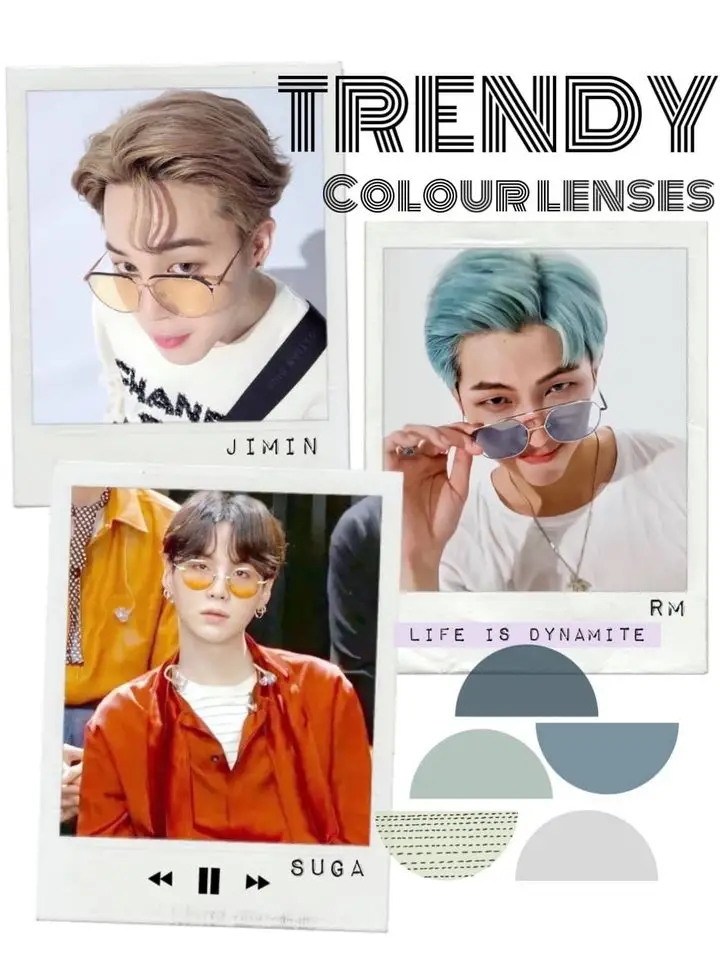 อย่างหนุ่มๆ Boyband ที่ฮอตที่สุดในจังหวะนี้อย่าง BTS (บีทีเอส) ก็ยังเลือกแว่นตาเลนส์สีมาเสริมลุคให้ดูจัดจ้านและน่าสนใจยิ่งขึ้นไปอีก ไม่ว่าจะเป็นเลนส์สีต่างๆอย่าง เหลือง ฟ้า หรือส้ม บอกเลยว่าการใส่เลนส์สีสันนั้นเพิ่มเสน่ห์ให้กับทุกคนได้แบบล้นหลามเลยล่ะ