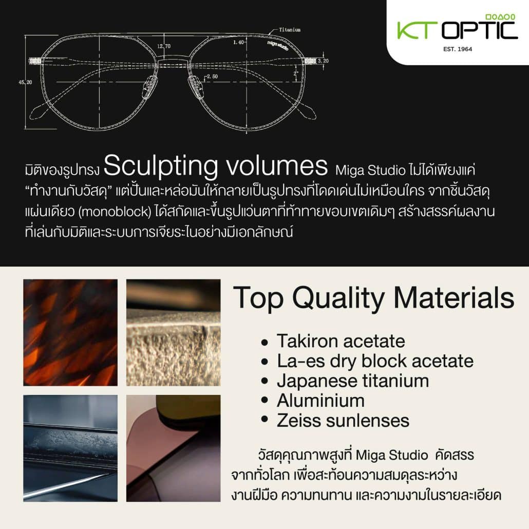 แว่นตาแห่งสถาปัตยกรรม | แบรนด์แว่นตาที่ผสมผสานวัฒนธรรมของอิตาลี และ ความละเอียดอ่อนแบบมินิมอลของญี่ปุ่น ถ่ายทอดรูปแบบสมัยใหม่ผ่านวัสดุและรูปทรงที่ขัดแย้งกัน ได้รับแรงบันดาลใจจากงานสถาปัตยกรรม สร้างดีไซน์ที่โดดเด่น เป็นเอกลักษณ์ โดยออกแบบ มิติรูปทรง Sculpting volumes (สคัลป์ติ้งโวลุ่ม) การสร้างและปรับรูปทรง 3 มิติที่มีมิติชัดเจน จากวัสดุ Top quality materials