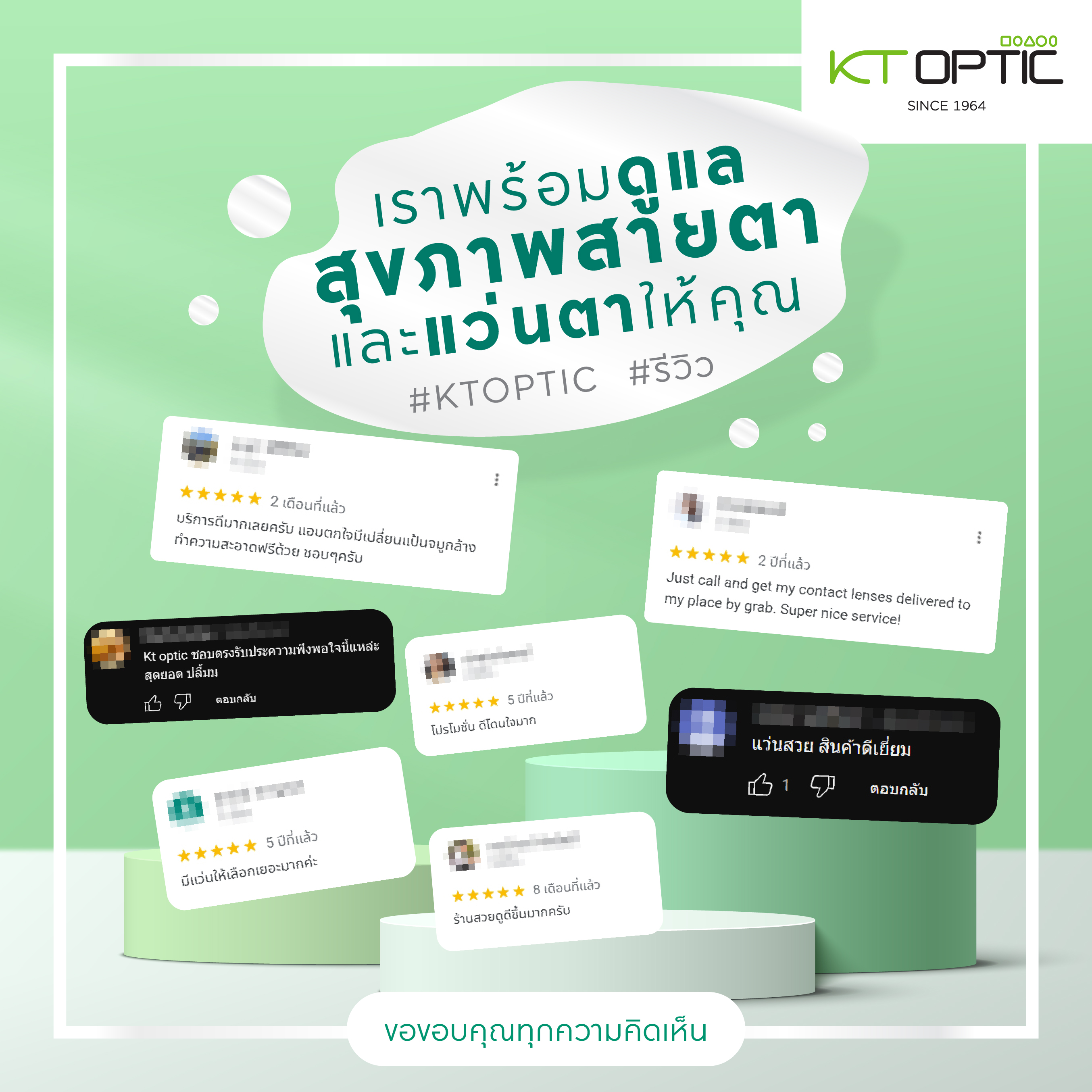 ในนามตัวแทนของ KT OPTIC แอดมินขอขอบคุณทุกๆรีวิวจากลูกค้ามากนะค่ะ