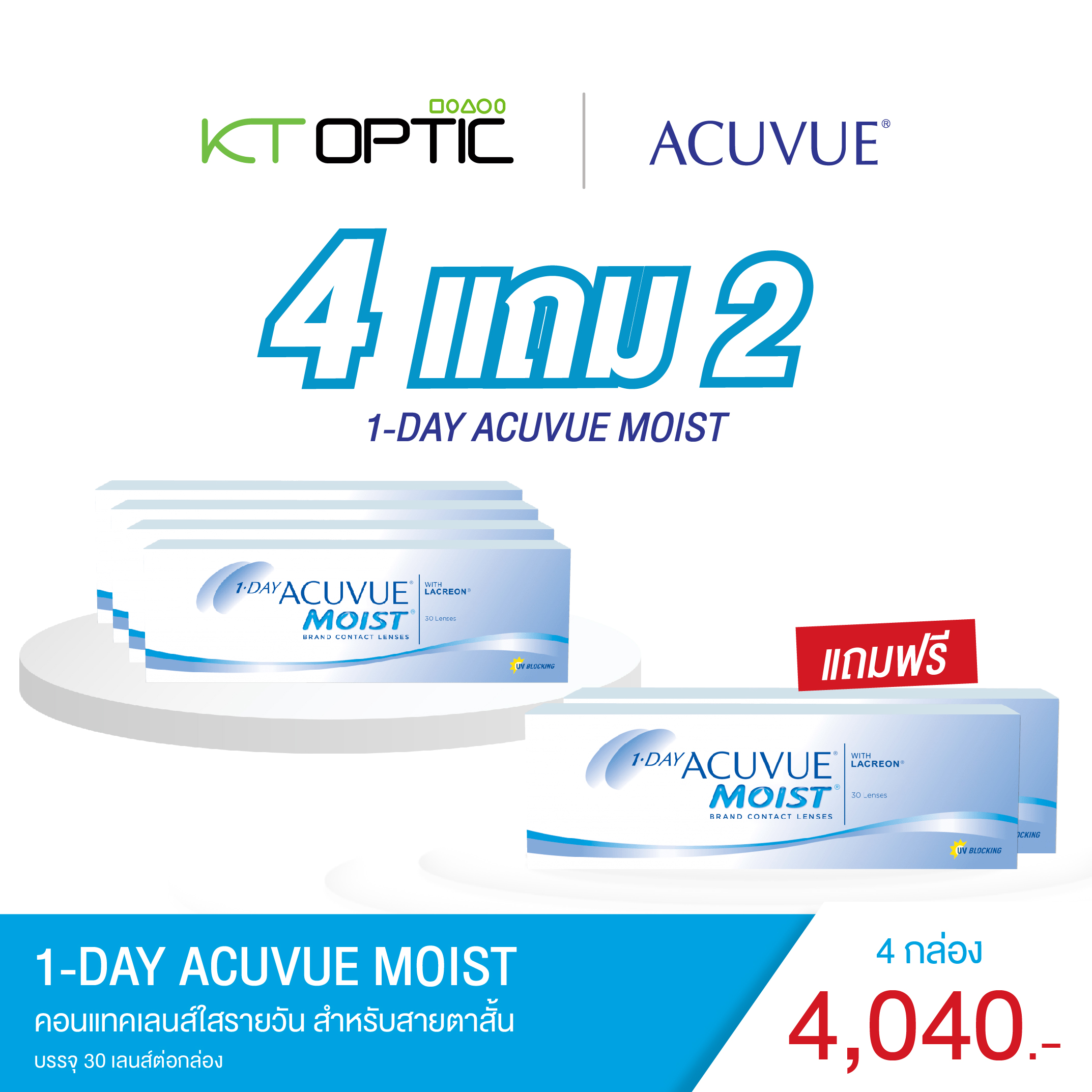 ACUVUE 1-DAY MOIST SET 4 BOXES FREE 2 BOXES คอนแทคเลนส์ใสแบบรายวัน สำหรับสายตาสั้น